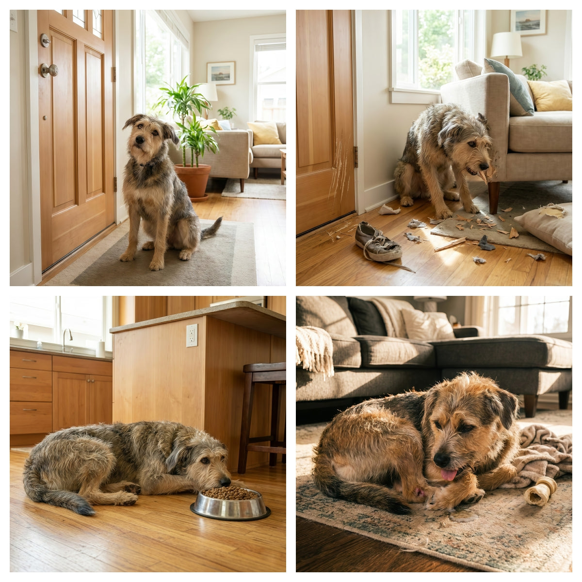 Chewing furniture, scratching doors, or tearing up items are often stress responses—not bad behavior.